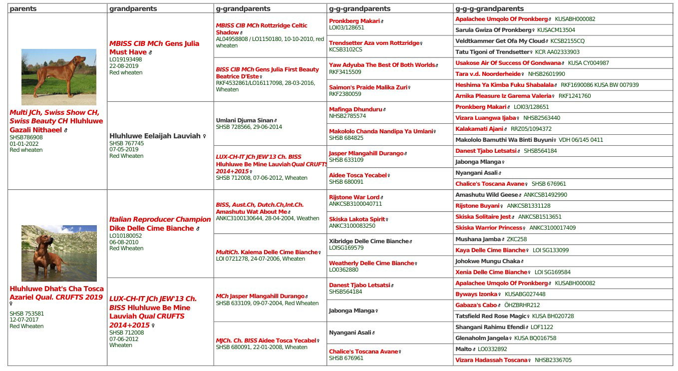 (MCh. Hluhluwe Be Mine Lauviah x Dike delle Cime Bianche)